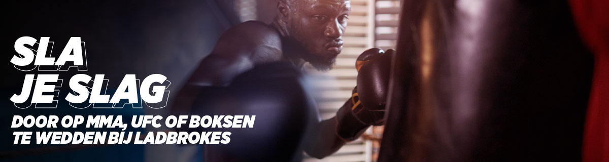 Wedden op wie een gevecht gaat winnen; het moet zowat de essentie zijn van het spelletje. Doorgaans begint het al op de speelplaats… Wie dit naar een geheel ander niveau wilt tillen, is bij Ladbrokes aan het juiste adres. Bij ons vind je een duizelingwekkend aanbod aan MMA en UFC weddenschappen en talloze manieren om op boksen te wedden. Anders gezegd: ons aanbod slaat de concurrentie simpelweg KO!
